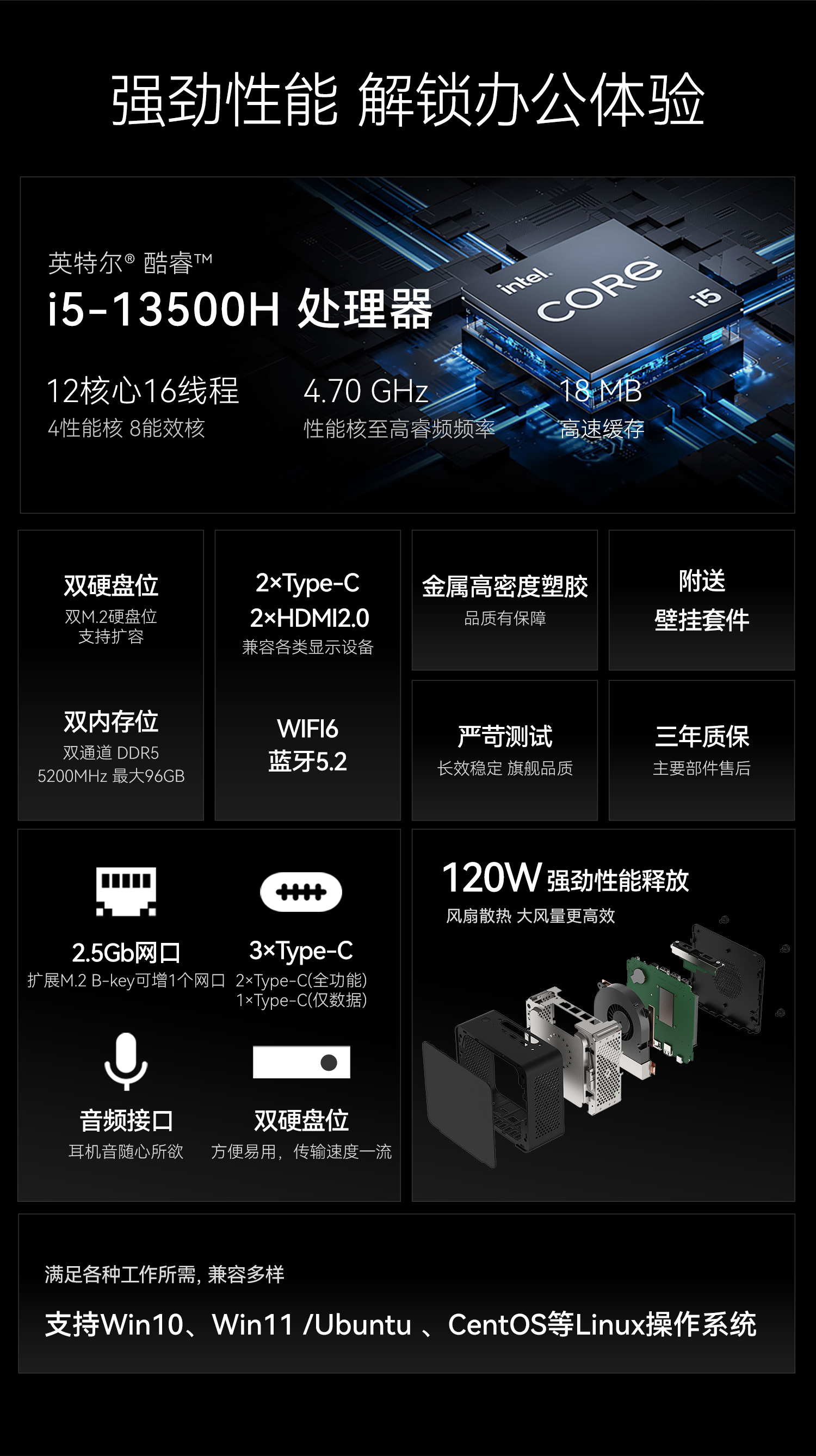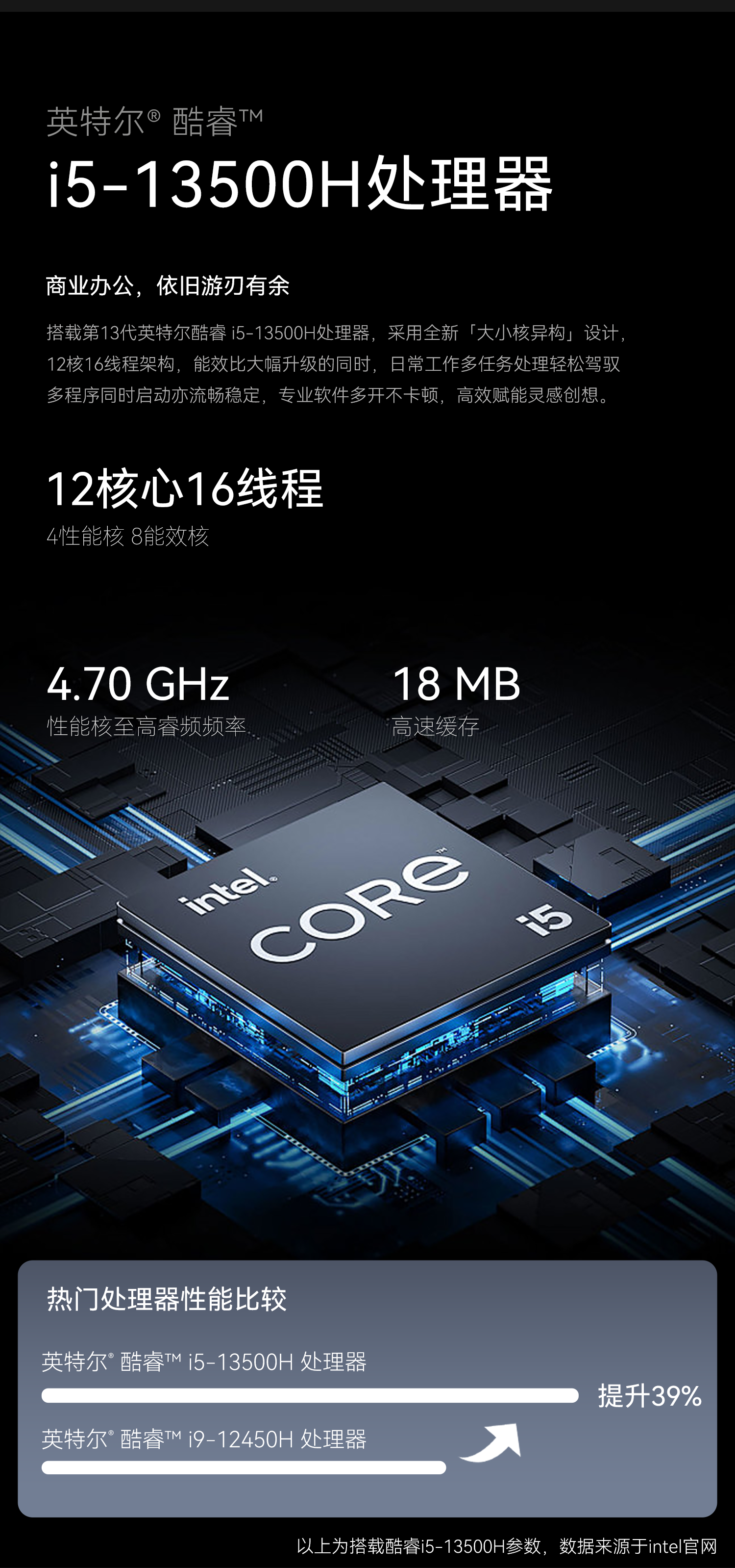 搭载Intel13代、Intel12代RPL-H、ADL-H/P 高性能处理器